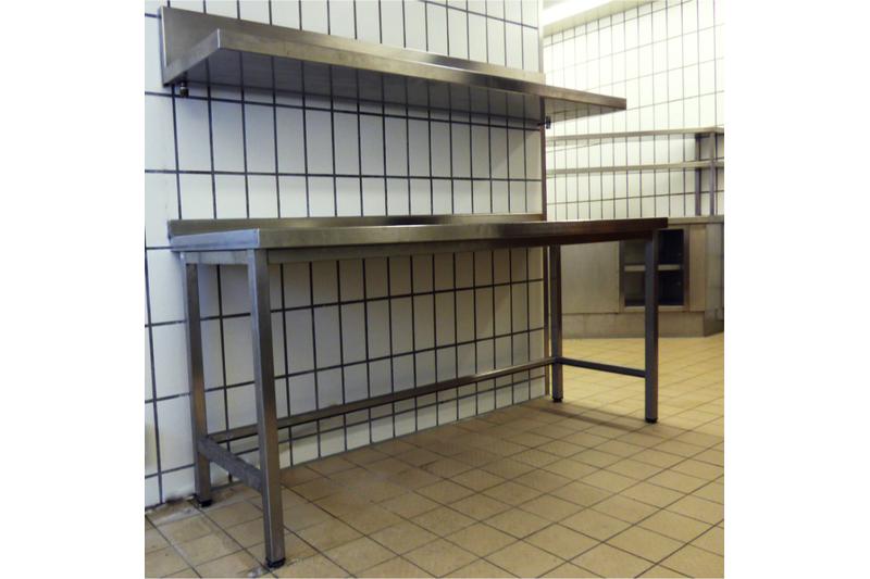 Arbeitstisch mit Ablageboard aus Edelstahl